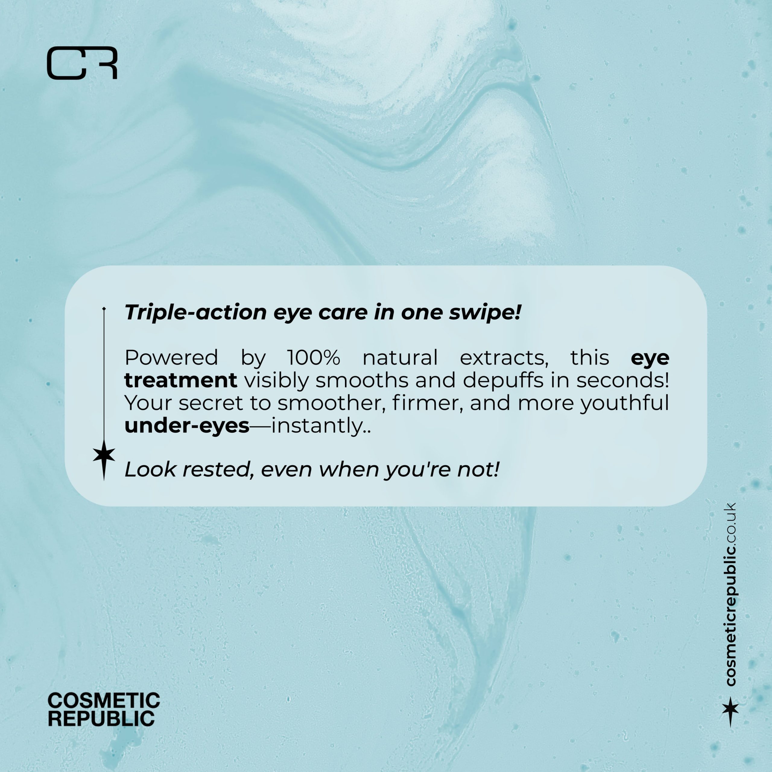 This product also provides three key benefits for even better results. First, it firms the skin around your eyes, making it look tighter and more toned. Second, it helps reduce muscle movements, which smooths out fine lines and wrinkles that can appear around the eyes. Third, it reduces excess fluid buildup in the area, helping to minimize the appearance of under-eye bags.
